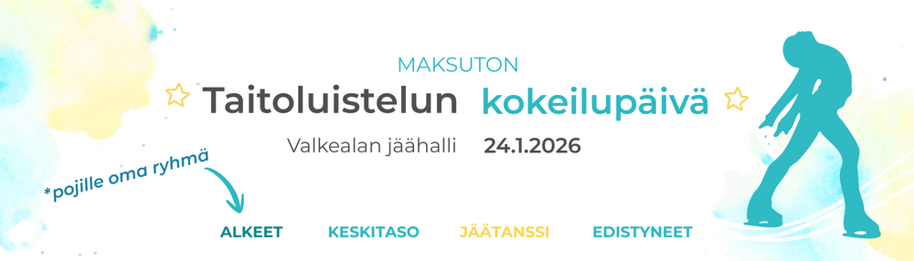 Tule kehittämään taitojasi tai kokeilemaan taitoluistelua valmentajan johdolla! Päivän aikana järjestetään neljä eri tasoryhmää – kaikille löytyy sopiva tunti.
