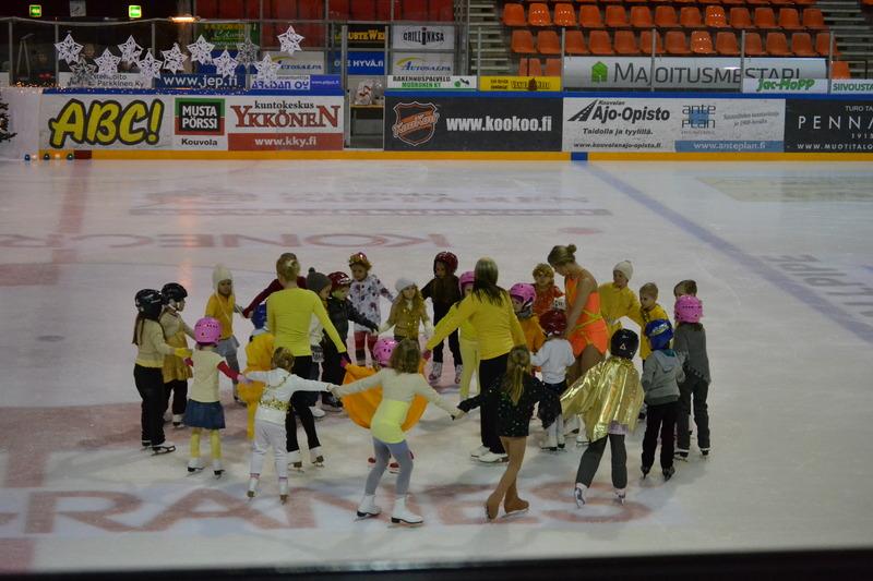 Jäälle uskaltautuivat Lumikistakin tutut kääpiöt - kääpiöinä kilpaluistelijat ryhmästä K3.
