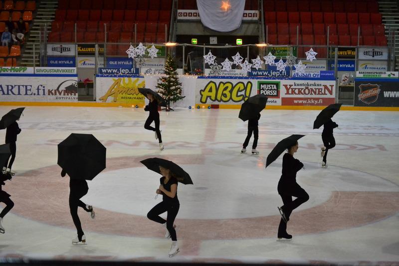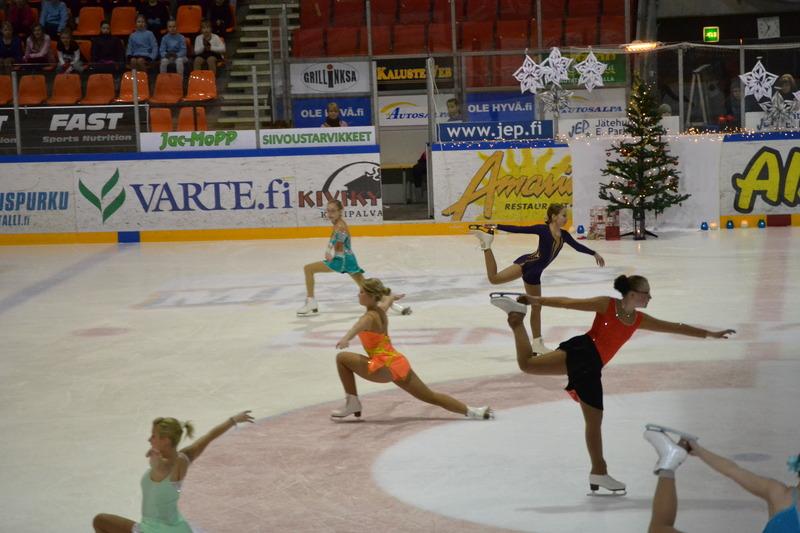 Kilpailuistelijoita ryhmistä K1+K2 pikkujoulutunnelmissa
